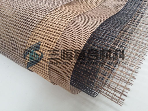 公司采用优质的玻璃纤维及凯芙拉(芳纶)为基材编织成高强度的网状基布,后涂覆具有优良特性的PTFE(铁氟龙)树脂,制成铁氟龙网状烘房输送带的基布,再以特有的生产工艺加工成各种规格的透气烘干输送带。